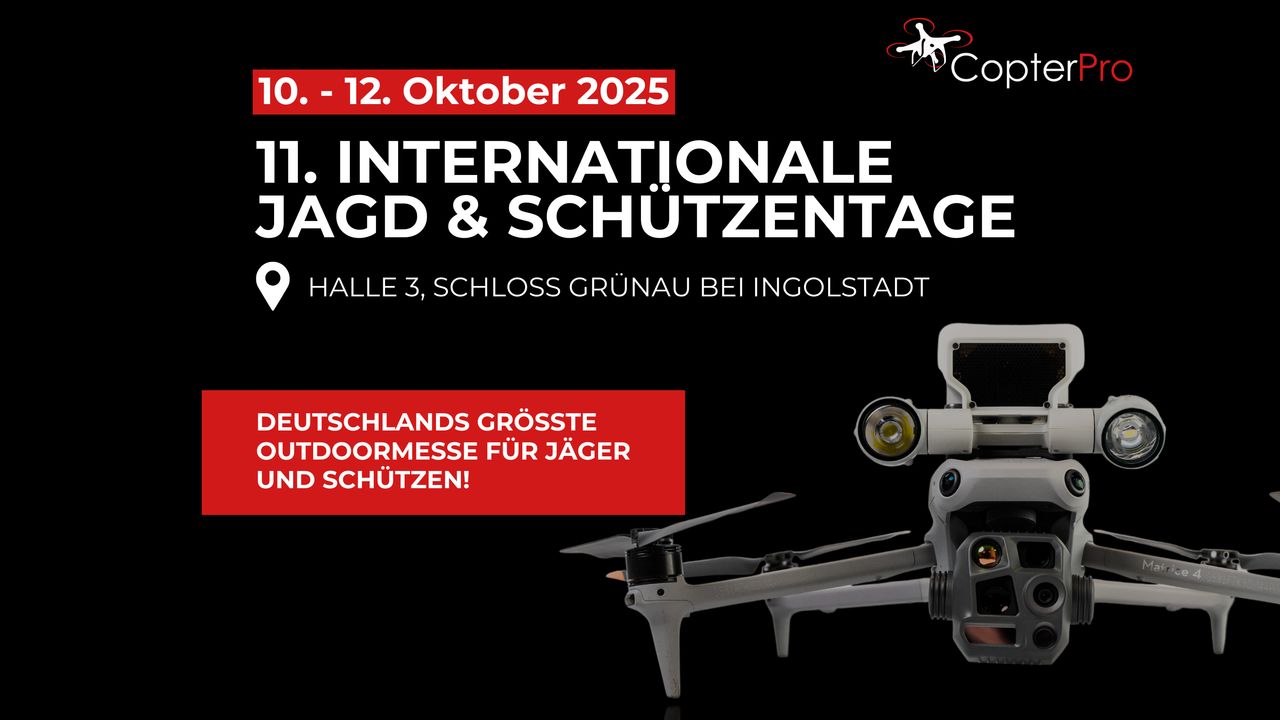Vom 10. bis 12. Oktober 2025 findet im Schloss Grünau bei Neuburg a.d. Donau bei Ingolstadt die 11. Internationalen Jagd- und Schützentage statt – Deutschlands größte Outdoormesse für Jäger und Schützen. Wir von CopterPro sind natürlich mit dabei und freuen uns darauf, euch vor Ort unsere neuesten Drohnenlösungen zu präsentieren. Ihr findet uns in Halle 3!